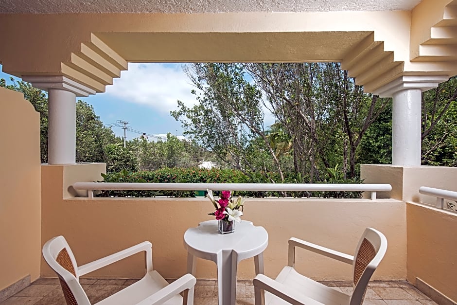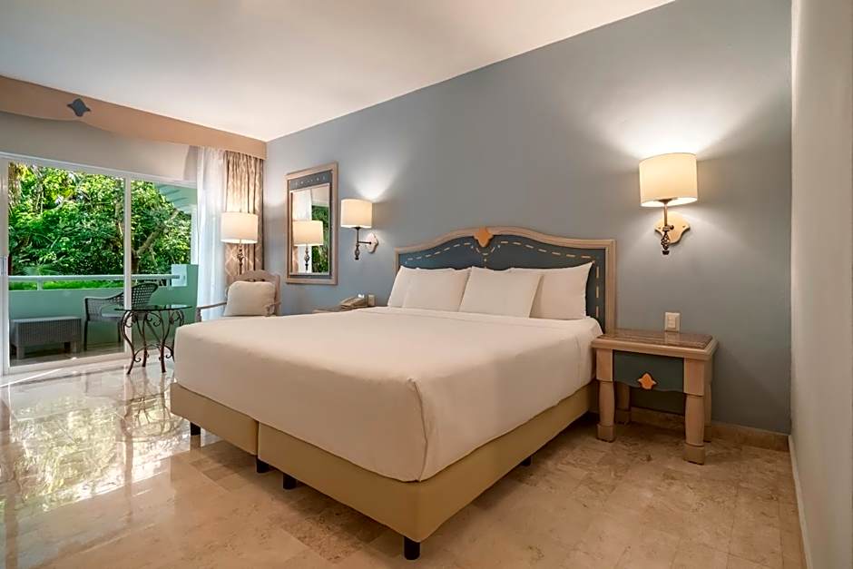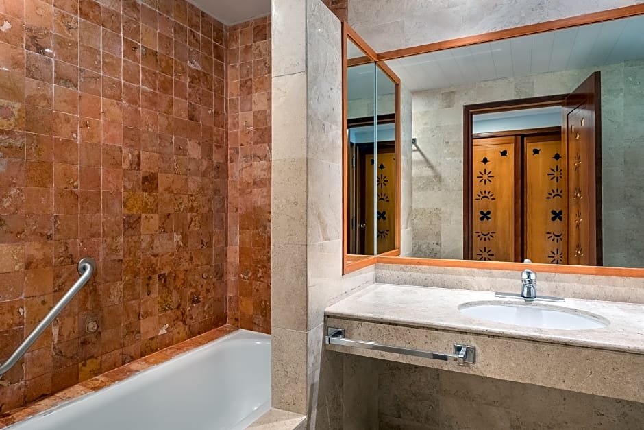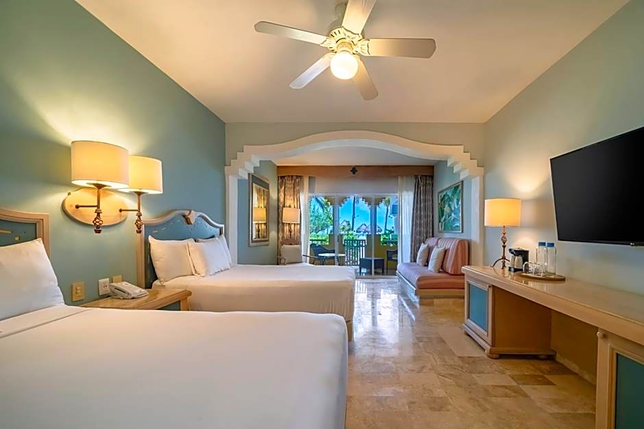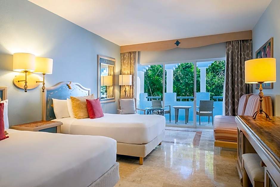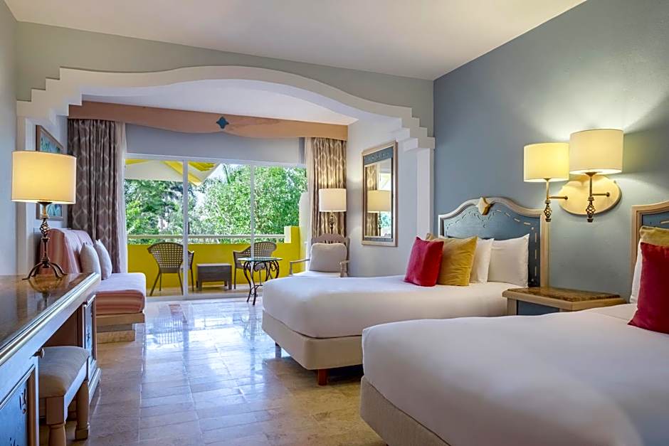 A seating area with a flat-screen TV, a desk, a balcony and a private bathroom are provided in this spacious family room.
